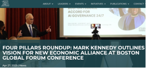 Mark Kennedy Outlines Vision for New Economic Alliance - Speech at Harvard's Loeb House at Boston Global Forum Conference - April 27, 2025
